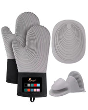 5Pcs Oven Mitts and Pot Holders 500°F High Heat Resistant Silicone Kitchen Oven Mitts Waterproof Non-Slip Easy to Clean Cotton Lined Oven Gloves BPA-Free Oven Mits Set for Baking and Cooking - Gray