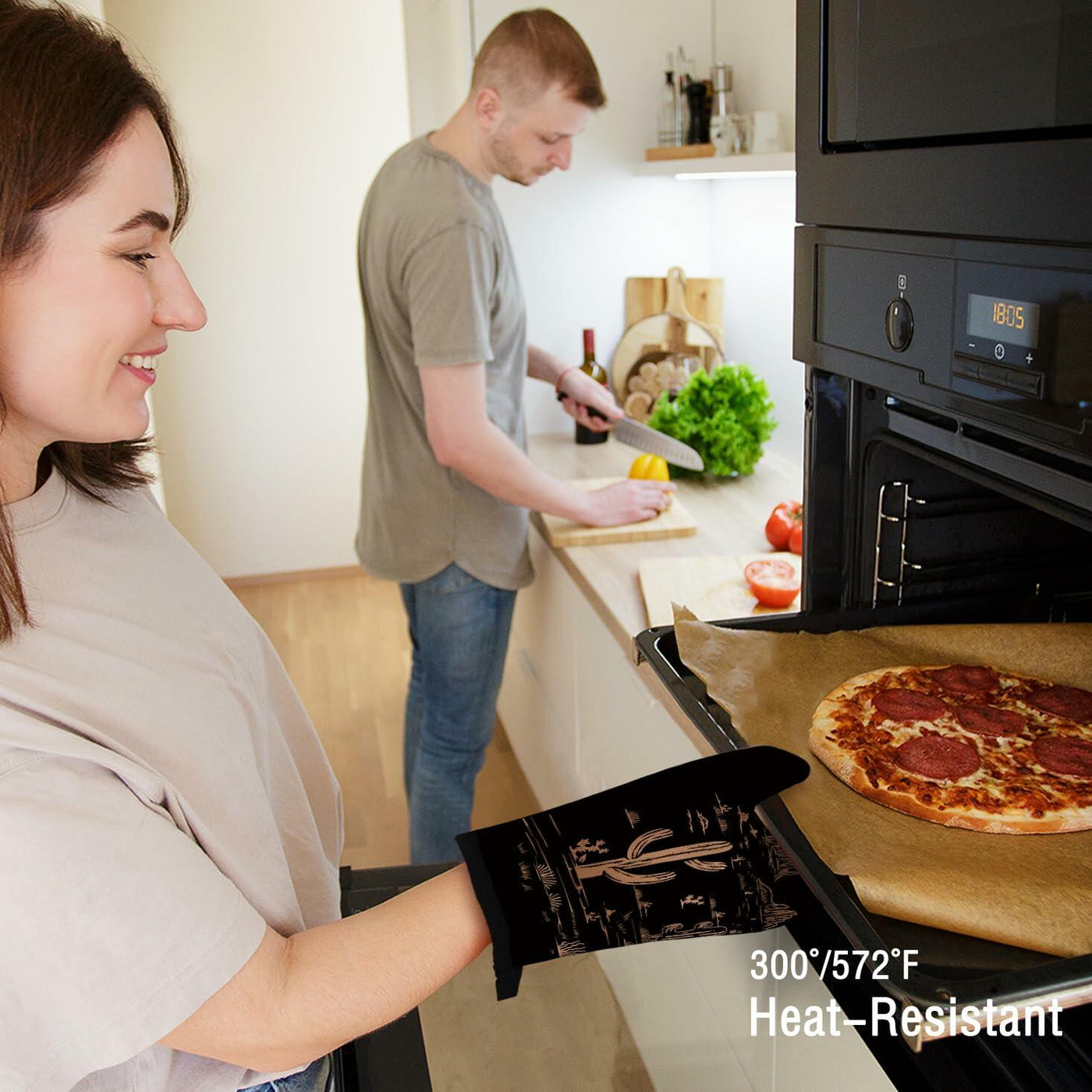 - 【About the item】1pc oven mitt (10.5 inches x 5.5 inches) and 1pc insulating mat (8 inches x 8 inches) set, heat-resistant 300°/572°F, you can rest assured that you can use this set and enjoy the fun of cooking.